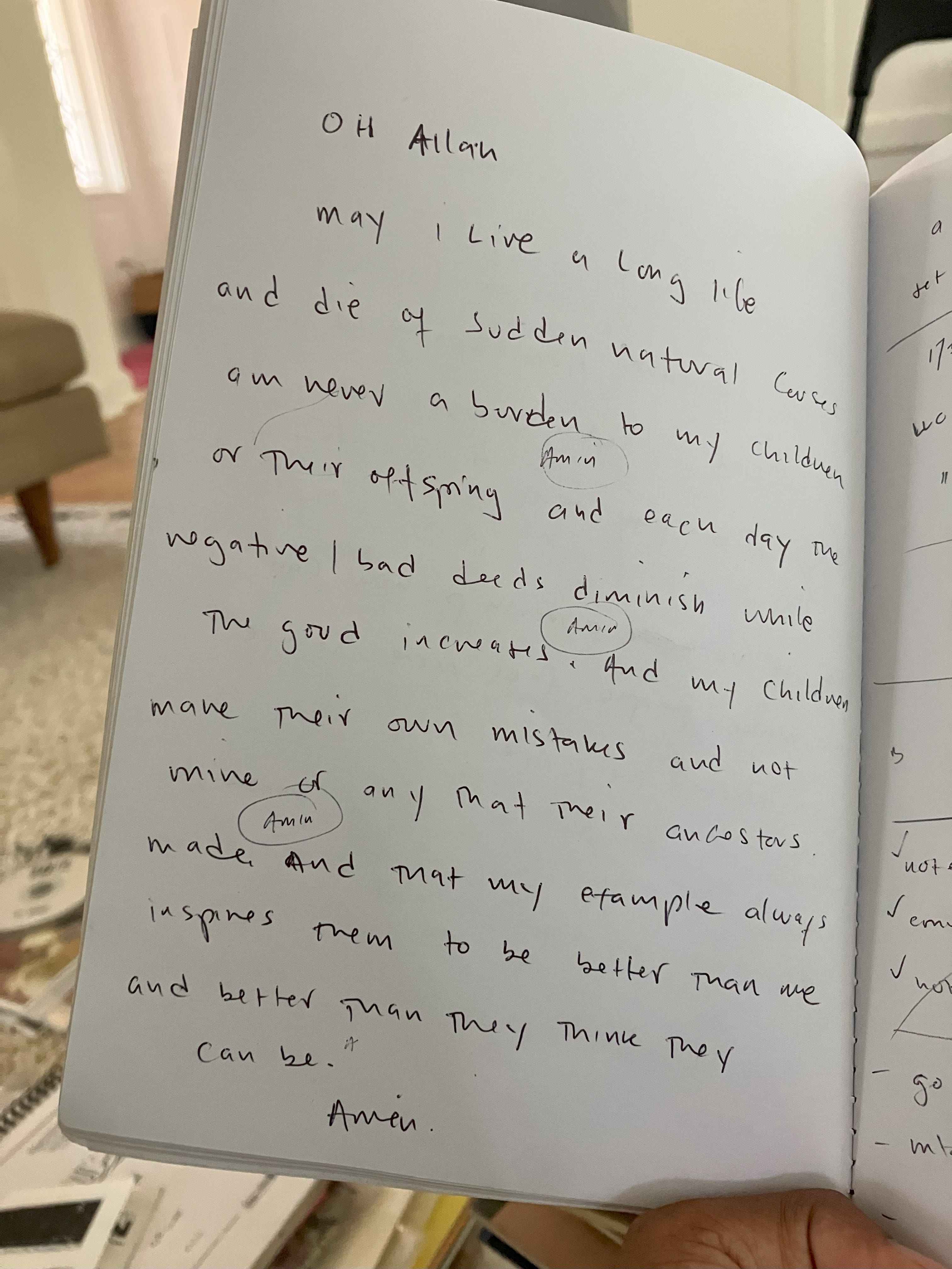 Here is a prayer that I found in one of Ibrahim’s journals.